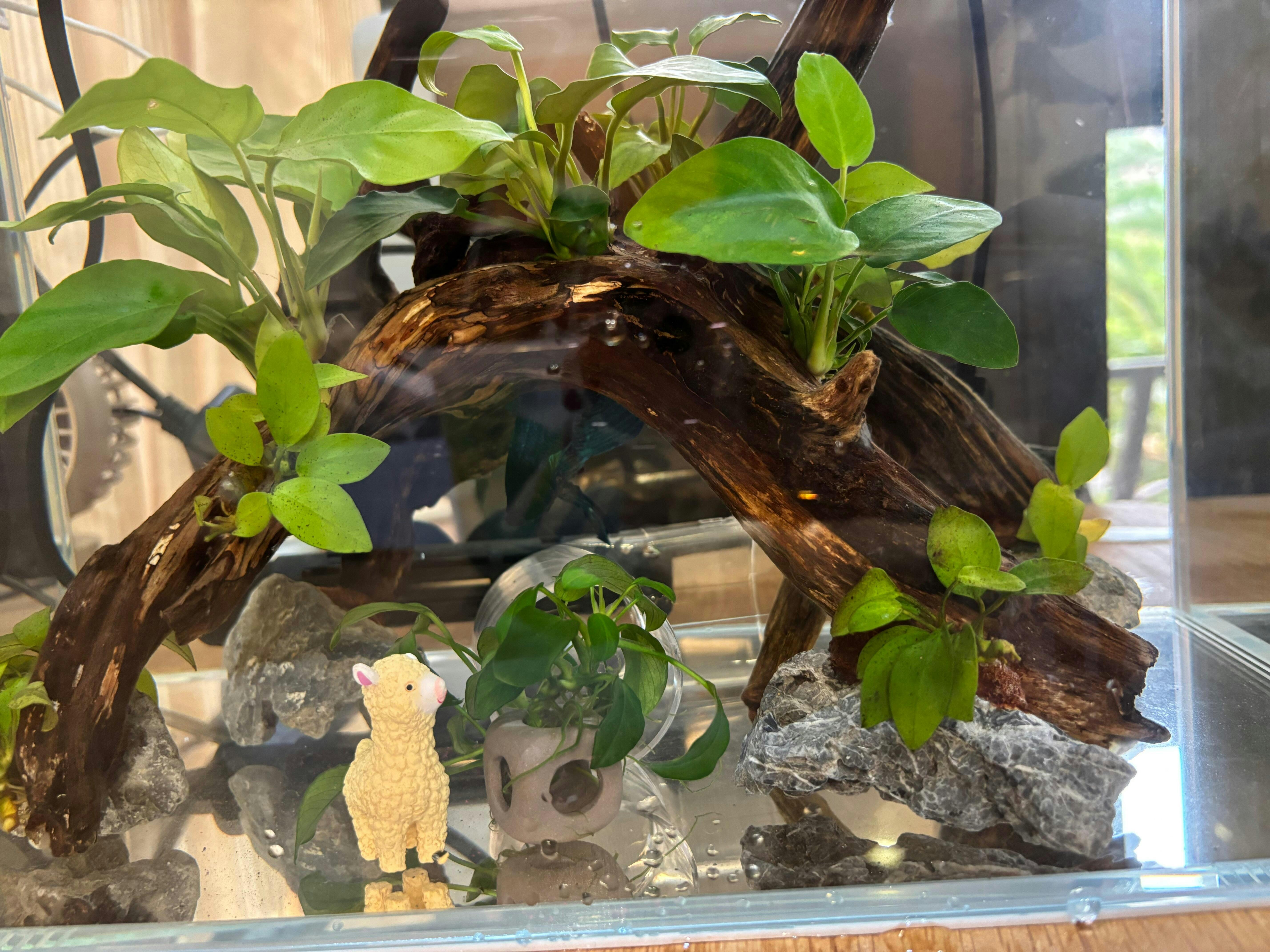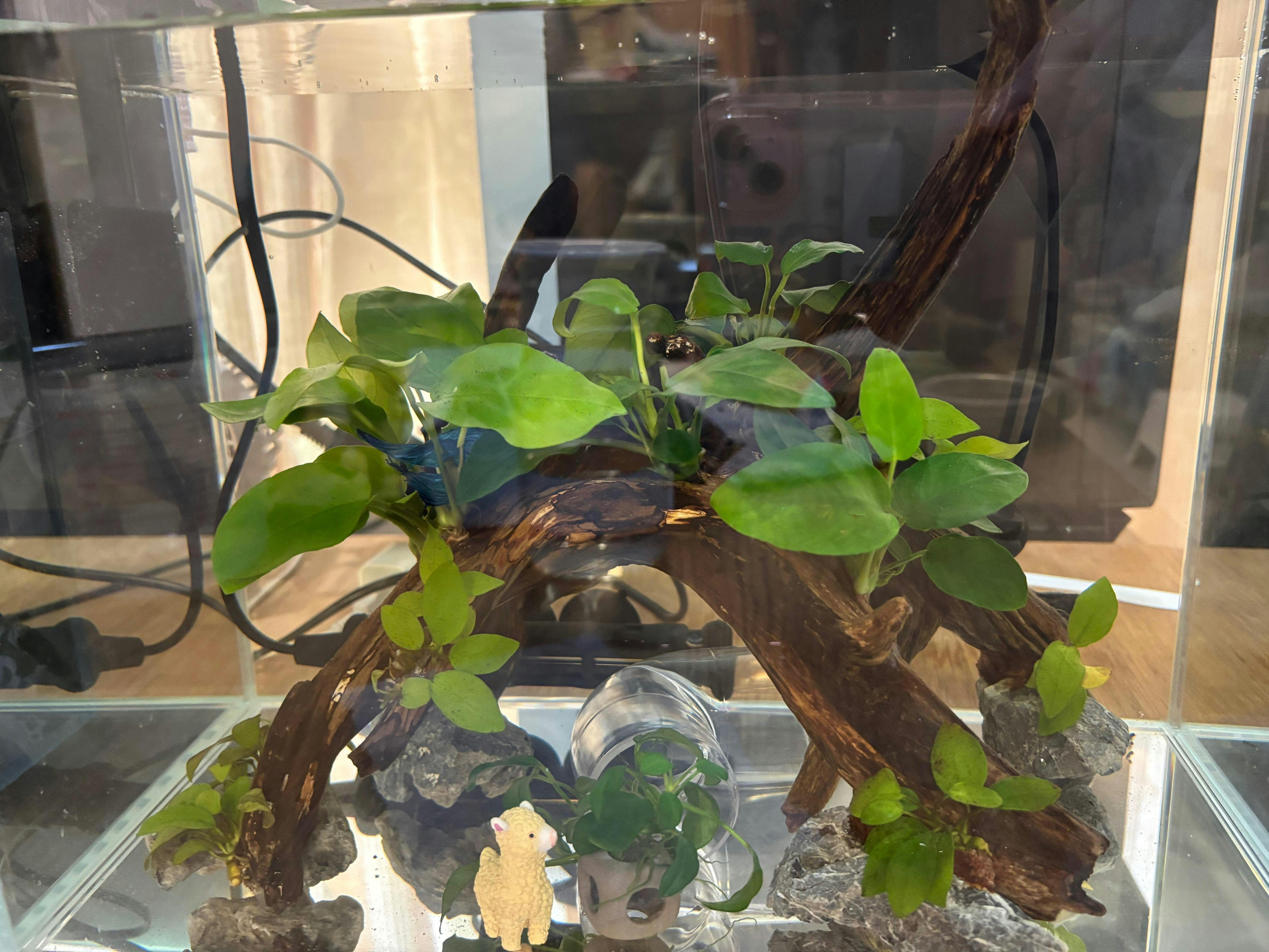 放入造景後,換水、加入硝化細菌。都可以減少改變環境出事的機率。