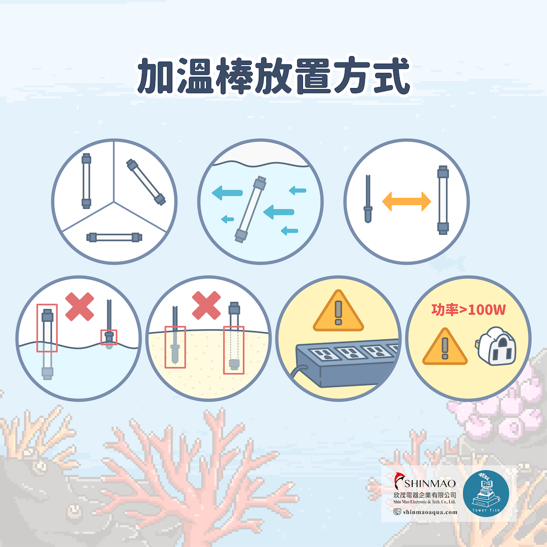 加溫棒不論怎麼放都可以,但有幾點要注意
