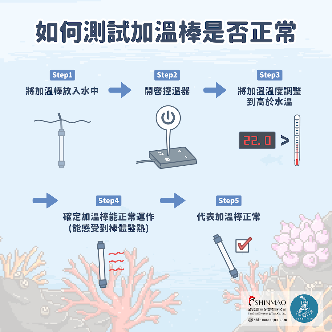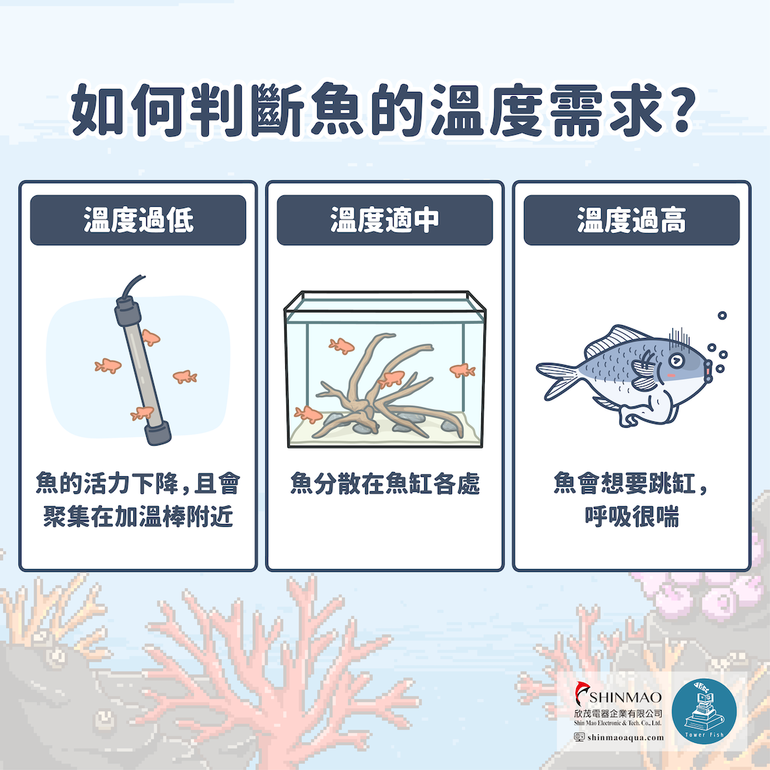 可以根據魚隻反應微調溫度。使用加溫棒後,務必每天檢查水溫狀況。